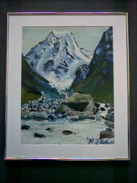 gletsjer: Olieverfschilderij 37,5 x 48,5 cm.